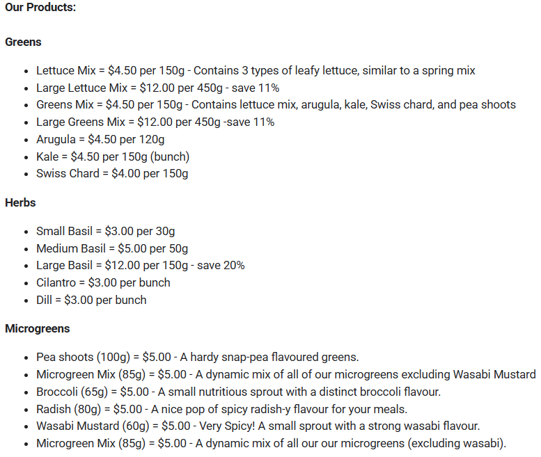 We are now accepting orders for our winter greens program! Click your location below to place an order or call 506 456-6001 ext 2.
